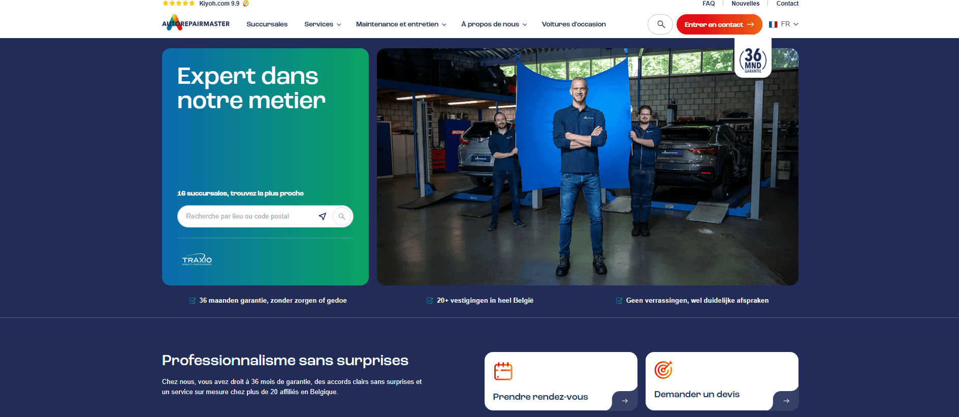 Chez nous, vous avez droit à 36 mois de garantie, des accords clairs sans surprises et un service sur mesure chez plus de 20 affiliés en Belgique.